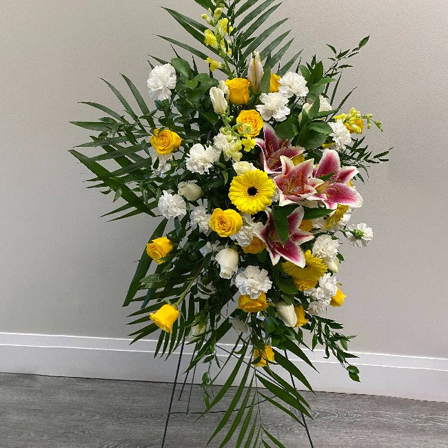 Palm Leaves, Ruscus, Roses, Carnations And Lilies